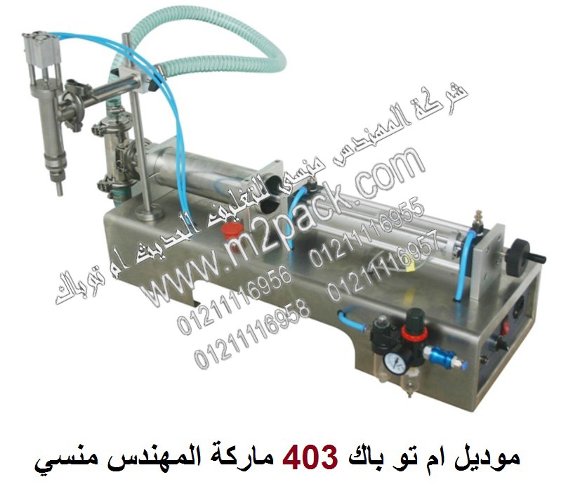 ماكينة تعبئة سوائل نصف اوتوماتيك موديل ام تو باك 403 ماركة المهندس منسي