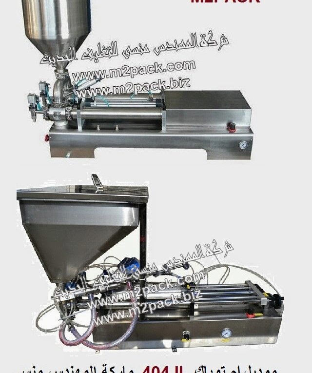 ماكينة تعبئة سوائل نصف اوتوماتيك موديل ام تو باك 403 دبل اي ثنائية المخرج ماركة المهندس منسي