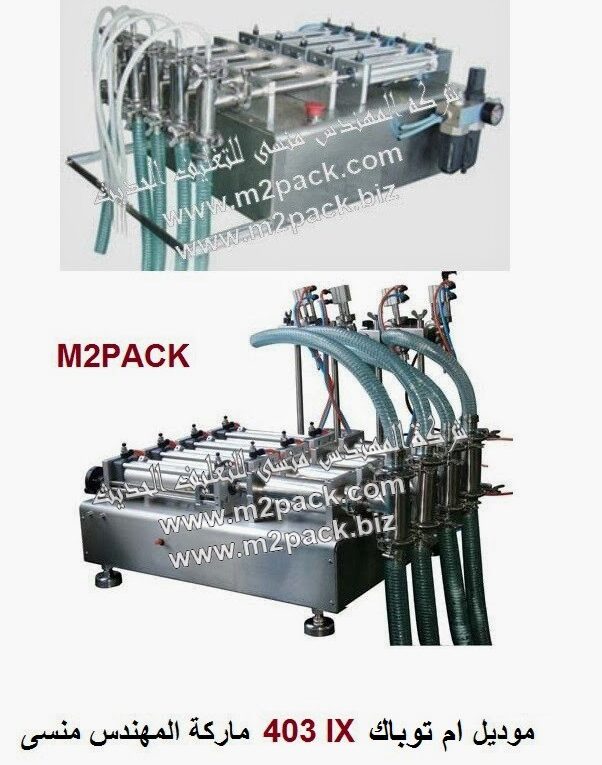 شرح مبسط لماكينة تعبئة سوائل نصف اوتوماتيك موديل ام تو باك 403 رباعية اي اربعة مخارج – اربعة نوزل ماركة المهندس منسي
